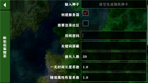 4、点击创建服务器并设置房间密码。