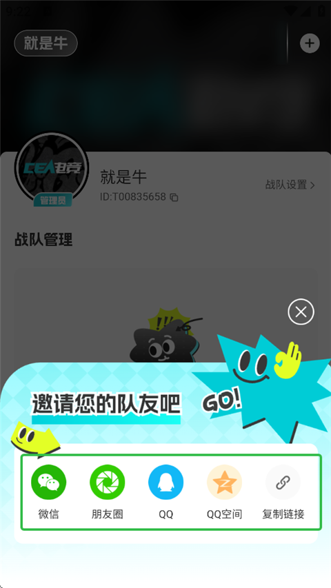 7、通过给微信、QQ给队友发送邀请链接加入。