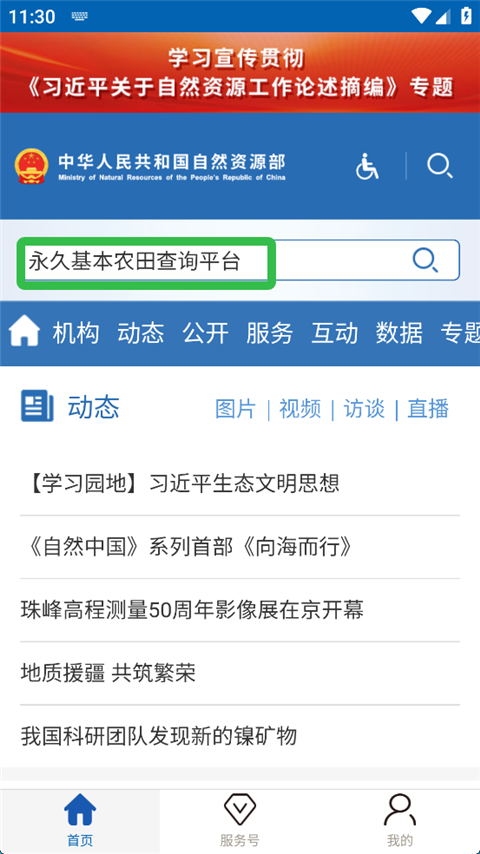 1、进入自然资源部App中,点击右上角搜索标识。
