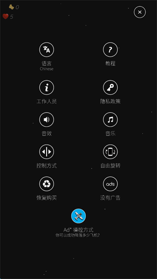1、驾驶你的太空飞机,躲避炮弹撞击和行星,注意混乱的星云! 2、收集太空里面的黄金漂浮物并解锁新的太空飞机和武器! 3、控制飞机的方式有左右侧边触屏,手指触摸和方向键控制! 4、13种不同种类的飞船供你选择! 5、5种游戏模式:月球,小行星,猎户星云,引力场, 舰队! 6、收集黄金解锁不同的威力的飞机和武器道具! 7、偏转器护罩,各式武器,加速推进器和其它终极武器! 8、在游戏中心与他人比较分数!太空两分钟游戏怎么设置中文