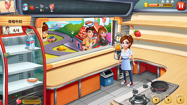 明星大厨2是一款模拟经营餐厅的休闲娱乐游戏,我们将成为一个餐厅的老板,为顾客制作美味可口的食物。下面小编就为大家带来新手攻略,告诉大家当客人太多的时候,如何使用小技巧来完成每一个客人的订购单。 1、进入游戏后,我们将经营一家小餐厅,在窗口会有顾客来点餐,他们的头顶会出现所需的食物,而我们将他们所需要的食物制作好,然后送给他们就可以获得金币了。 2、在屏幕的左上角会有菜单提醒,告诉我我们顾客所需要的菜单是如何制作的,例如下图中的饮料,就是需要牛奶和香蕉,然后放如果汁机中就可以获得。 3、大家需要注意,每一位顾客在点餐的时候,头像旁边都会有能量条,这是顾客的耐心值,随着我们制作食物所花费的时间长短,顾客的耐心值会降低,当降低到黄色甚至红色的时候,顾客给予我们的菜品费用和消费都会降低