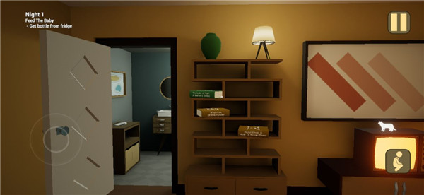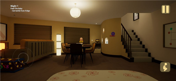接下来是换尿布,最关键的时刻到了,胆小的人做好心理准备,你拿到尿布刚要给他换的时候会突然变成恶魔把你吓倒,然后开始召唤玩具攻击你,你必须赶紧来到你自己的房间,拿出金色奶嘴给他戴上,那时候他就会突然倒下,你就得带着他去婴儿房,给他读绘本,然后第1个故事结局达成了。