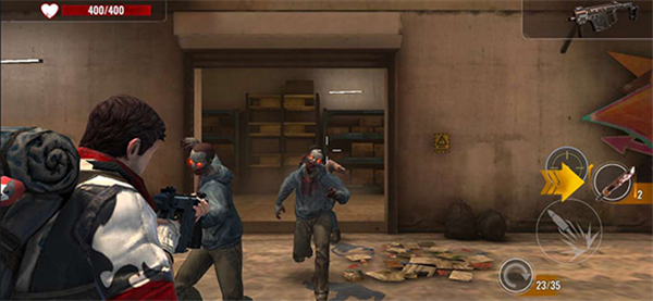 1、进入游戏经过故事情节,准备逃离来到这个地方,前面有僵尸需要打败他们才可以通关这里,如何操作呢?非常简单,在屏幕左边这个区域是负责移动靶心,将靶心对准僵尸。