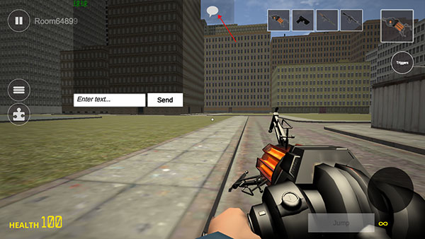 6、左下角有隐形轮盘,控制前进后退等,“Jump”跳跃,右上方为武器切换,可以选择不同作战方式,开始自由探索射击吧。
