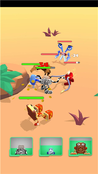1、随着游戏的不断进行,创造出来的角色将会拥有不同的等级和强大战斗能力,还可以进行合成升级。 2、各种奇形怪状的角色都可以合成,没有你合成不了的角色,只有你想象不到的造型,充满特色的玩法。 3、每局游戏最多只有三个角色出战,赢得游戏胜利之后,就可以获得更多道具,可以去合成更多的角色。游戏玩法