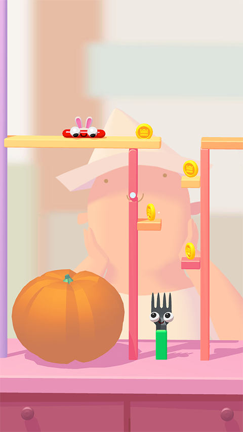 5、同理也是拾取金币然后落到叉子上便可过关;