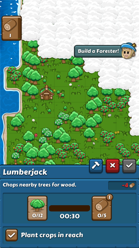 2、拥有足够木材后,点击锤子,可生产各种建筑。