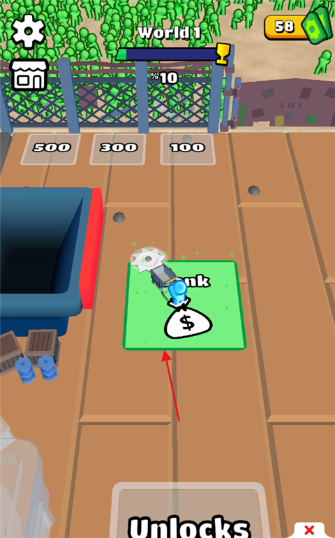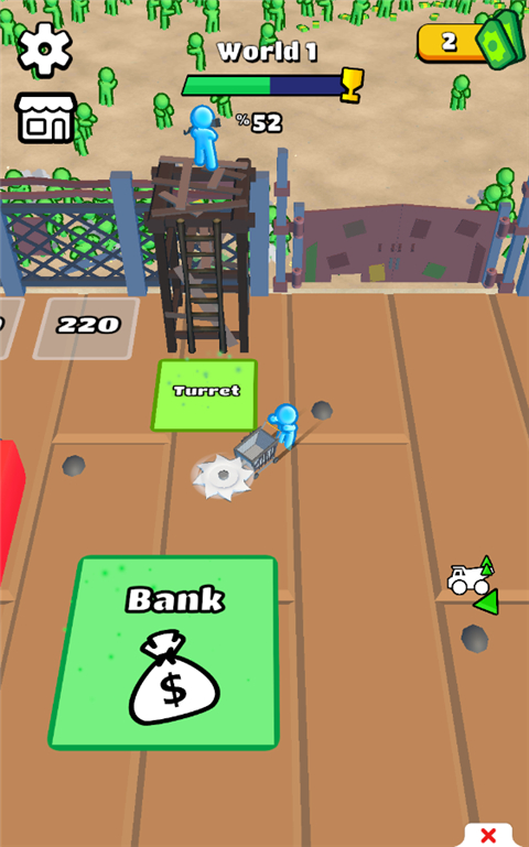 5、另外,玩家收集钞票后可以直接前往门口的带数字的区域,消耗相应钞票即可生成一个小人为你攻击丧尸;