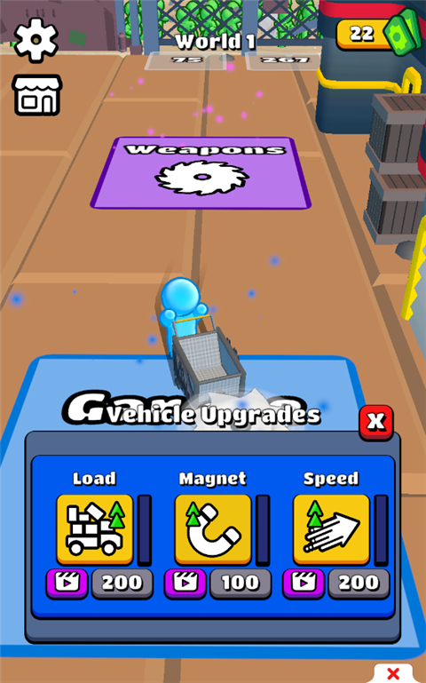 4、钞票可以在Weapons中购买武器,也可以在Garaye升级你的车辆属性;