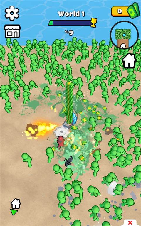 2、上下左右移动屏幕控制角色收割僵尸获取钞票;