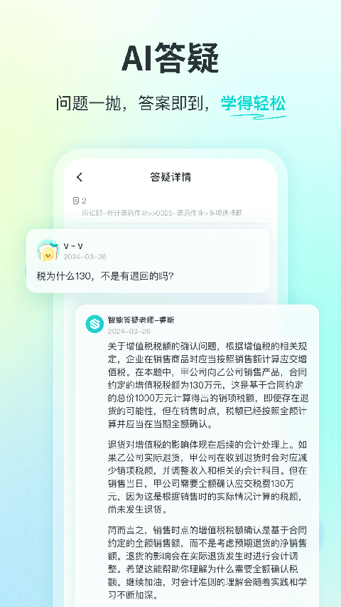 【一站式课程体系】 斯尔课程包括了初级会计、中级会计、注册会计师、税务师多考种,包含入门阶段“抢跑计划”、基础阶段“行者计划”、冲刺阶段“飞越计划”课程设置,覆盖备考全程;提供中级「二年3科」CPA「三年6科」多种课程选择,总有一款适合你! 【多轮直播大班课】 零基础小白、在职宝妈、二刷党、畏难党不要怕!斯尔多轮、多时段陪伴式课程体系,满足你的多样学习需求!直播课堂中实时和老师同学互动,及时解决你的疑问难点,涨分拿证so easy! 【免费题库+AI阅卷】 海量题库,覆盖初级会计、中级会计、注册会计师、税务师多个考种,包括过往X年真题与高质量模拟题,更有真题解析、错题本、正确率统计等功能,让你的练习更高效。更有主观题AI阅卷,5分钟自动阅卷,是帮助你提升主观题得分的好帮手! 【答疑服务】 有问题直接在线提问,专业答疑老师为解惑,让你的学习更高效。 【全真口碑模考】 高度模拟真实考场环境,搭配高质量命题,助你熟悉考试真实环境。考后老师直播解析,精准查漏补缺。 【贴心的社群服务 】 金牌班导全程督学,专属社群资料,上课提醒,下课回访。“私教班”更有VIP定制服务。 【 精编考试用书 】 斯尔《打好基础》+《只做好题》、《5年真题3套模拟》、《斯维导图》、斯尔《66记/88记/99记/108记》多个系列口碑图书,从知识梳理到试题练习,再到考前刷题,打造学习闭环。斯尔教育app怎么考试答题?