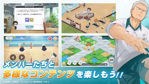 以高品质3D再现比赛 3D模型人物在球场上奔跑,还有自动系统,可以轻松操作! 在火爆的比赛中体验排球的乐趣! 精彩的技能表现 除了定格动画外,比赛的精彩片段还通过精彩视频再现。 关注成员们真实的外貌和强大的必杀技! 组队免费 在本作中,您可以从原作中出现的 40 多名成员(将来会增加更多)中进行选择。任何组合都是可能的! 打造属于你自己的最强队伍,志在巅峰,夺取胜利! 重温原著故事 原著中的著名场景和台词均以全语音真实再现。 让我们再次回忆一下那个火热的青春吧! 内容丰富 您可以体验日常测验、俱乐部、训练营等丰富多彩的内容。 让我们以各种方式享受“高草裙舞”吧!排球少年FLY HIGH港台服中文版训练营总结