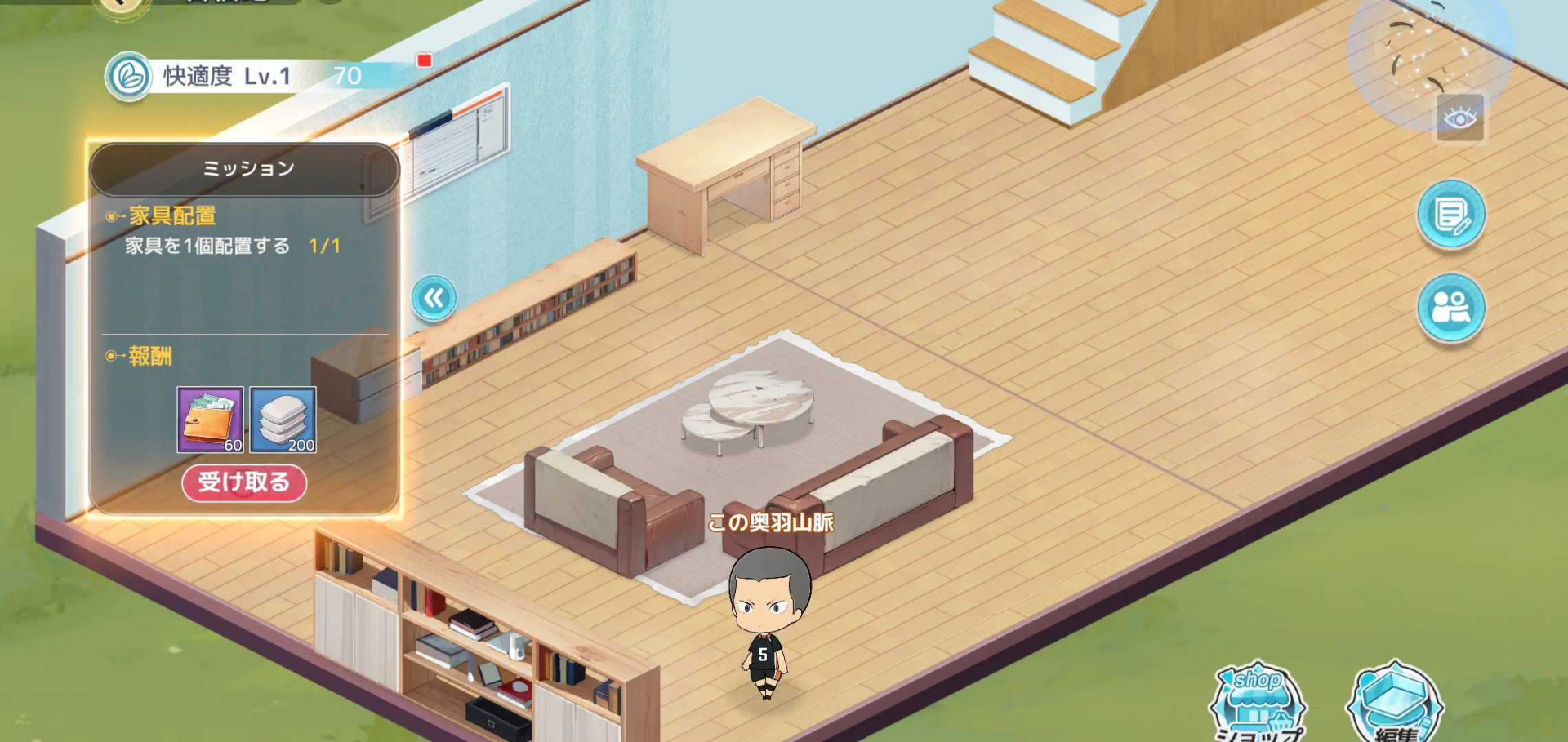 训练营的每个房间都可以放置家具。家具有多种形状和颜色,因此您可以打造具有各种概念的房间。收集家具并创建自己的房间。