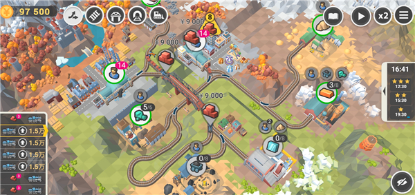 1、一款融合微观管理、策略闯关的独特游戏,掌控自己的公司,帮助当地社区繁荣发展。 2、公司模式是《铁路工程师》中的一个全新模式,共有50个关卡! 3、海量的火车选择——18种型号的机车可供解锁,更有超过45种类型的火车车厢;在周围世界的需求不断增长情况下,你必须竭尽所能,保持高效率和高成本效益!铁路规划新星手游工业时代第13关城堡攻略