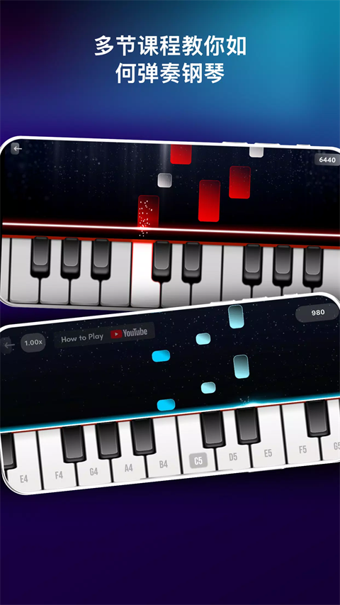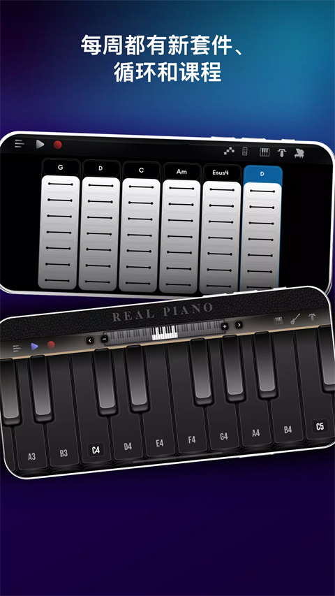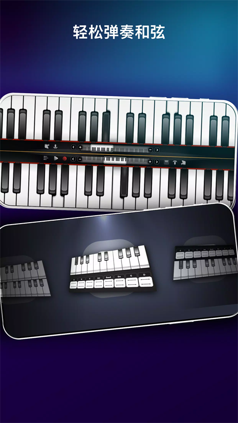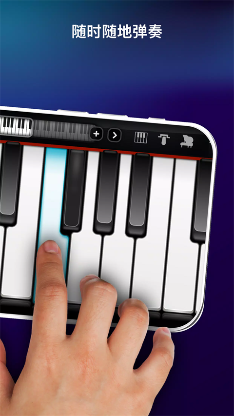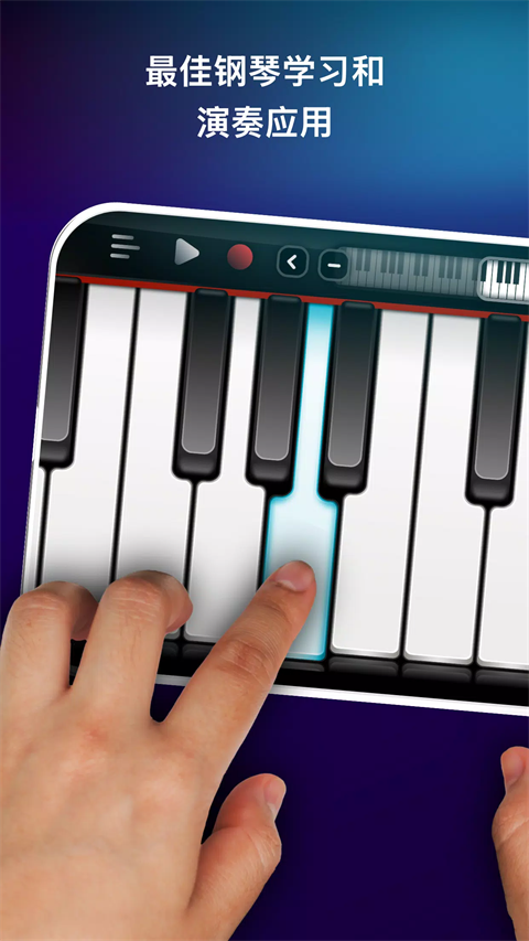 1、100节钢琴课 通过我们的课程学习弹钢琴。 2、完整的7个八度音阶 探索整个键盘。 3、键盘和和弦模式 在真实键盘上弹奏和轻松弹奏和弦之间切换。 4、可调节音阶大小 根据您的喜好自定义键盘。 5、钢琴和弦库 访问超过1500个和弦。 6、录音室音频质量 享受清晰的声音。 7、多种乐器 钢琴、合成器、电钢琴、风琴、管乐器、弦乐器、吉他、贝司和其他民族乐器。 8、每周推出新乐器 让您的声音保持新鲜。 9、录音模式 录制您的乐曲并在社交媒体上分享。 10、交互式循环 与专业制作的循环一起演奏。 11、MIDI支持 连接您的MIDI设备以增强控制。 12、通用兼容性 可在所有屏幕分辨率上无缝运行,从智能手机到平板电脑(高清图像)。 13、无延迟音频 享受无缝声音。真实钢琴模拟游戏怎么弹奏本地歌曲