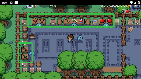 1、玩家需要控制角色在随机生成的地图中移动,角色会自动攻击靠近的怪物。 2、游戏融入了Roguelike经典元素,拥有随机地图、掉落物品和敌人。 3、玩家可使用金币购买武器升级、解锁新伙伴,或通过水果解锁强力道具。游戏截图