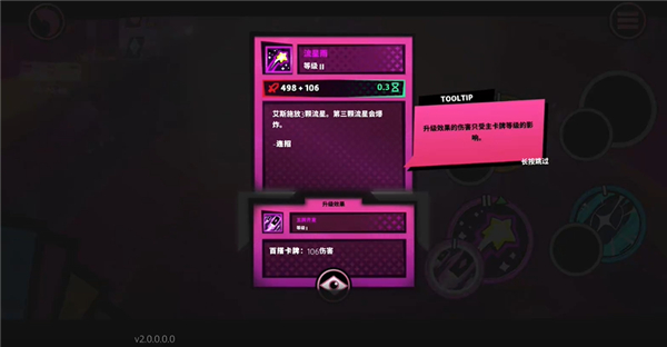1、轻度Roguelike体验 尝试、死亡,然后再度尝试,直到击败红眼魔术师为止;可重玩性和拥有永久性升级的 Rogue-like 的紧张体验,让你在每进行一轮游戏、走得更远之时都会更加强大。 2、2D等距快节奏动作 挑战多多,但交战公平。在击破各种奇妙生物和残暴老怪,一路前行的同时,构筑起自己的魔法储备。 3、打造自己独有的构建 组合拥有超过千种可能性的各种卡牌,每种组合都有自己独特的游玩方式和力量。 4、千变万化宫殿的重重挑战 在非线性攻略宫殿的过程中,探索游戏中的无止限奢华美学,在前往击败莱勒并逃出诅咒魔镜的远征中击退独特的各色敌人和老怪。更新日志