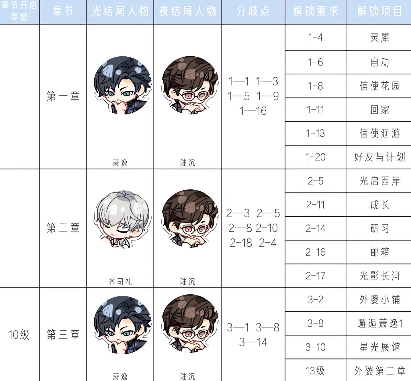 以下为1-18章光夜结局要点以及结局角色 1、第一章-第三章
