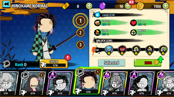 1、进入游戏我们可以进行阵容搭配,由于小编是刚刚玩,只有两个人物;
