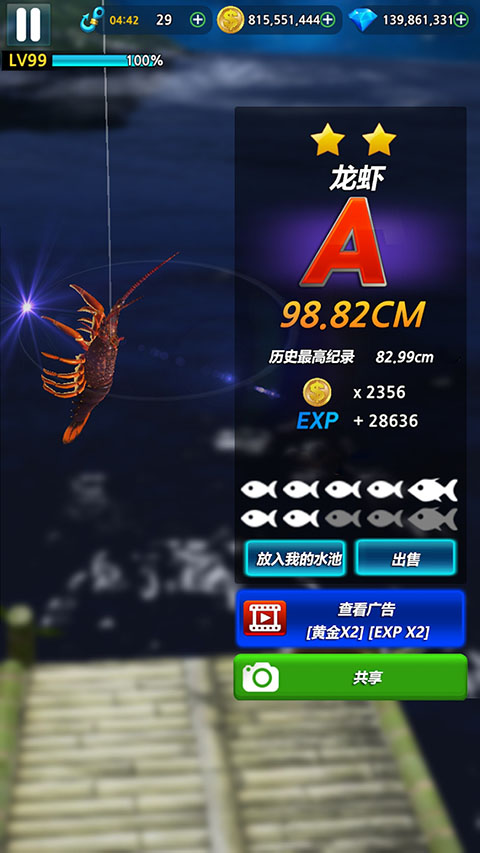 7、钓到的鱼可以将其存入水池,也可以出售。