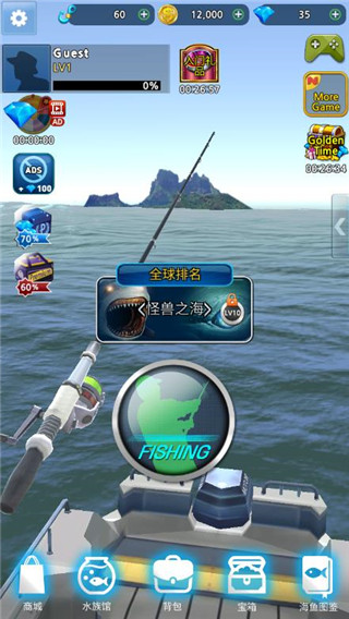 1、完成各种挑战 全部类型的鱼类可谓是应有尽有,玩家自由挑战,满足您的所有期待。 2、更新丰富道具 商城了更新了各种的道具,您可以解锁出鱼竿,轻松获取珍惜的鱼类。 3、探索不同海域 多个不同的海域等您探索,还有趣味的钓鱼挑战,增加了游戏体验感。 4、感受轻松操作 简单的钓鱼操作,玩家只需要通过一个按钮即可轻松的上手,欢乐多。 5、积累丰富金币 各种不同的鱼类可以解锁,还能进行售卖,让您获取更多丰富的金币。 6、轻松的挑战 随时都能开启一场华丽的钓鱼之旅,解锁高级的装备,玩法更加轻松。游戏玩法