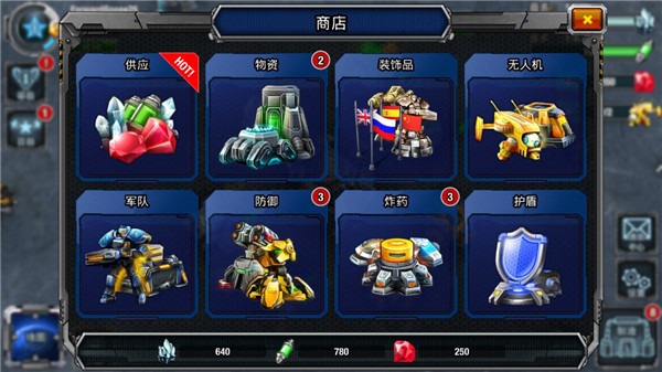 1、100% 免费玩的终极策略游戏。 2、收集矿物并提取铀来建造和升级基地。 3、用激光塔、导弹发射台、大炮、城墙以及地雷防御基地。 4、利用超过 11 种独特的地面和空中作战单位创建终极。 5、战役模式具有 30 多种特别任务 — 解锁 25 种特别成就和目标。 6、与来自世界各地的玩家战斗,夺取他们的名誉积分和物资。银河控制3D战略游戏攻略新手玩法