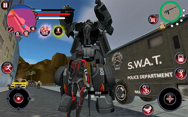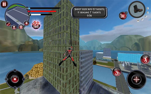 1、带有RPG元素的动感十足的3D FPS; 2、可调的图形质量,视图距离和流量密度; 3、超过10种不同的任务线; 4、增加金钱奖励与任务线进展,让你解锁更先进的武器在商店; 5、高级绳动力学,现在它也是你致命的无尽武器; 6、7把新的炸药和能量枪; 7、超过20种不同的车辆,具有自己的速度和特点。绳索英雄官方正版(Rope Hero)怎么玩?