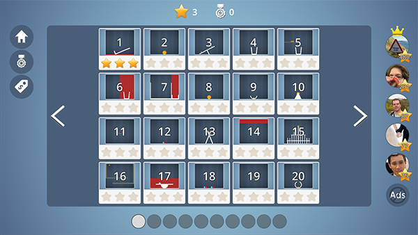 第一关:相当于是教学关,只要按照提示所说的做画一个形状,随便什么样都行就可以了。 第二关:我们要做的就是让黄色圆球撞到左边的墙,也很简单,在圆球右上方画出一个重物,掉下来砸到黄色球上就行啦。 第三关:需要让图中的物品向右边倾斜,很简单,在上方画个重物,掉下来砸到右边,就行啦。 第四关:要求是让杯子倒下来,所以我们只要在杯子的一边画上一个物品并向外倾就可以了。 第五关:要求是要让碗里的小球出来,我们直接在碗边的上方画一个重物砸下来让碗倾斜摇晃就可以啦。更新日志
