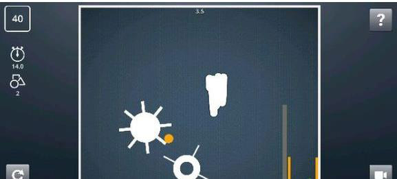 第40关:在最顶部画块石头瞄准右下方的那根齿轮杆子,计时器到2.3秒的时候松手砸下去!