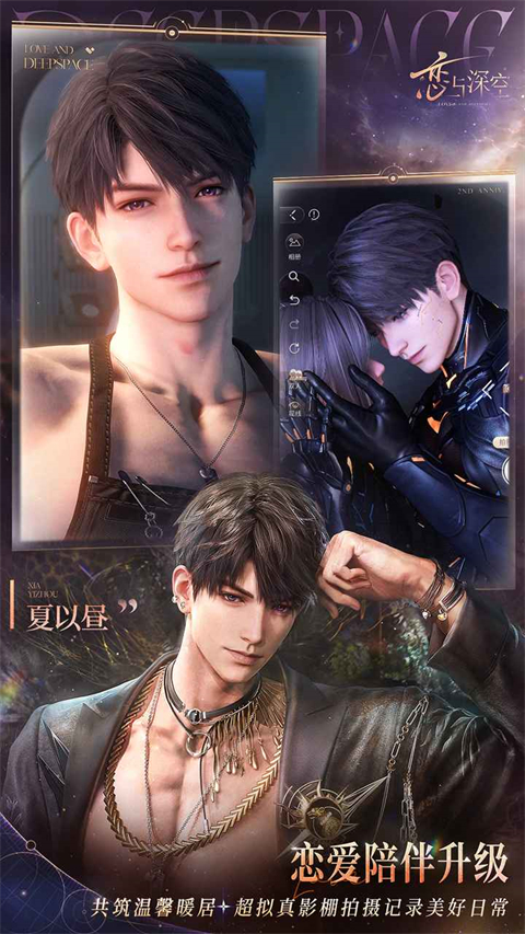 1、【新角色与故事】 新的男性主人公「申」登场,新的主要故事的更新也被做! 故事以使用丰富的3D图形的第一人称视点展开。 以独自的视点体验两个人无可替代的瞬间。 你可以近距离感受到男友的气息。超越现实和虚拟的界线,享受终极的沉浸感。 2、【充满真实感的恋爱体验】 体验三维图形实现的立体逼真的交流。 在度过亲密的时刻中,男友会根据你的行动做出各种各样的反应,心动的瞬间就会到来。 其他还有第一人称视点的约会故事、根据时间段男友的反应变化的交流内容。 有描绘了秘密的一时的附有声音的故事等,送交你前所未有的现实的恋爱体验。 3、【新的恋爱体验】 自由度高(贵)的艺术家工作室摄影系统正式安装! 和男友一起选择背景摆出姿势,留下两个人的特别照片吧。 另外,有空的时候和他一起玩喵喵卡,在起重机游戏中决一胜负。 为了记录心情而拍照,在男友的陪伴下学习、工作、运动。。。。。。。 有男友在身边,随时都能感受到甜蜜的时刻。 4、【和男友的共同战斗】 你将成为“深空猎人”,为了保护这个世界上所有重要的东西,与来自深空的神秘怪物战斗。 让我们和他心灵相通,挑战未知的敌人,探索深空彼方的秘密吧。 5、【只属于自己的风格】 根据自由度高的造型化妆系统(数十种细小的零件和100种以上的化妆选项) 你可以做出自己独有的外表。此外AI根据技术,也可以使用自己的照片自动进行角色化妆。 以自己独有的风格进入临空市,开始真实的恋爱之旅吧。恋与深空日服搭档系统介绍