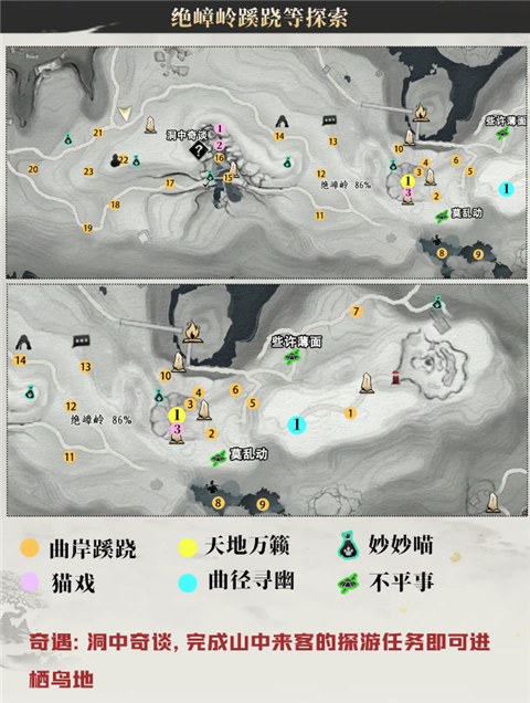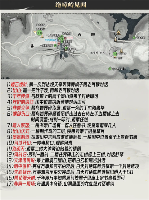 1、不是其他开放世界,是真实开放历史 不架空,真开放 古代风貌,中式绝活,史话趣谈…脚下热土,就是历史和生活发生之处。 纯粹写实的画面品质,只是为了让武侠世界本该如此。 2、不是其他武侠网游,是独众皆乐之旅 不套路,真武侠 见招拆招,单人探索,多人同行…无门无派练就武学奇术,不问出处我即是我。 充满疑局的单人探索体验,将只是广阔侠旅的一个注脚。 3、不是其他MMO,是无限未定人生 不规训,真自由 通关无线路,冒险无目标,人生无定义…抛却所有既定,才有人人向往的自由。 挣脱过往的规则束缚,聆听心中所想,创造独一无二的游戏之旅。 4、不是其他常规战斗,是纯正武术打斗 不妥协,真动作 着力反馈,攻守博弈,真实打斗…玩转十八般武器,兼具物理科学与暴力美学。 精心设计的武侠动作,兼纳百家的武学理念,出手即是真功夫。 5、不是其他江湖市井,是华夏文明之声 不独响,真共鸣 百工百器,刑罚律令,王道兵戈…聆听电影级文化叙事,探寻看得见的声音。 游览燕云大地,深入中式谜境,和鲜为人知的时代记忆不期而遇。云燕云十六声手游不见山绝嶂岭全收集
