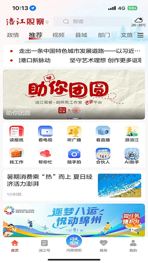 1、【首页】:打开涪江观察首页,这里显示的是一些常用的功能板块,如推荐、时政、政情、身边等。