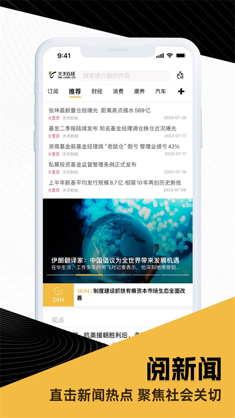 1、天天解忧 轻心理式的互动问答,“专治不开心“的立体互动社区; 理念来源于由日本著名作家东野圭吾畅销小说改编的电影《解忧杂货店》; 致力于情绪疏导,搭载了轻心理内容基因,避免网络社交“灵魂不在线”状态; 直面人性中的“孤独感”问题,在专业与娱乐之间寻找契合点,取得最佳平衡。 2:资讯 时事:追踪国内与国际时事热点,报道中央大政方针决策,解析经济时局风云; 财经:强调人文财富,关注财富故事与资讯,聚焦财富人物,500强企业管理之道,商业风云,财经新闻等内容; 人文:坚持大人文的理念输出,梳理集纳涵盖文化、艺术、国学、非遗、娱乐等诸多内容的大人文总编新闻 汽车:专注汽车行业产经报道,彰显在汽车产业、出行领域以及互联网领域的影响力; 湾区:针对粤港澳地区,基于本地的政治、社会、经济、文化等各类生活,推送具有湾区特点的新闻与视频,如城市建设、海岸故事、港澳艺人、湾区美食等。 3:视频 流行经典短视频,覆盖人文、生活和娱乐,包罗万象,根本停不下来;更新日志