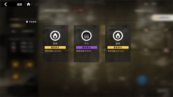部分节点在挑战成功后,我们可以在三个buff(外挂)中选择一个,可以根据自身阵容的流派选择适合的buff。譬如暴击输出流的自然是选择【暴伤算法】,而回复流派的则是选择【蓄能算法】,而一些需要先手打状态的阵容,则可以选择【急速算法】。