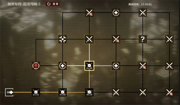 但是需要注意的,矩阵中的每一个地图格只能触发一次,且未与当前位置联结的地图格无法被选择。在所在的地图格周围没有可选择的地图格时,探索将会失败,失败后需要重新探索,所以我们需要谨慎选择行进路线。