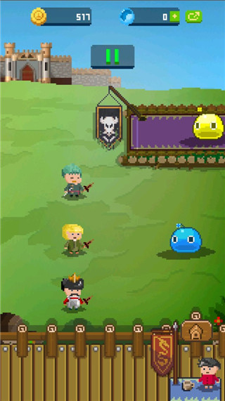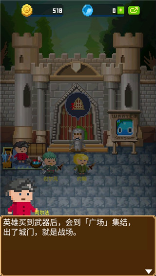 2、许多英雄会前来购买武器,通过出售武器让他们进行战场,消灭一波又一波的魔物;
