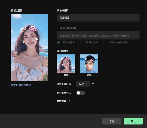 ● 允许素材导入:指此特效模板不仅支持直接用摄像头拍摄,也支持从相册中导入一张照片