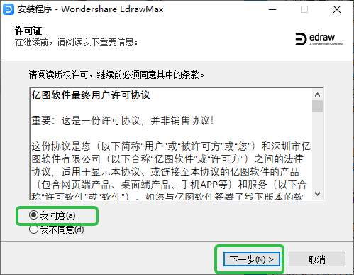 3、勾选【我同意】,点击【下一步】。