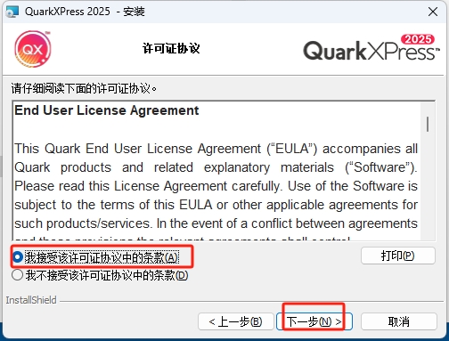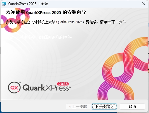 3、在QuarkXPress 2025安装向导页面,点击下一步;