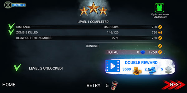 8、胜利后的结算界面会显示玩家的过关评分和奖励获得情况。