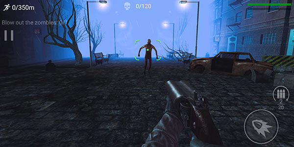 2、面对僵尸的进攻,我们会以绿色准星自动进行瞄准。