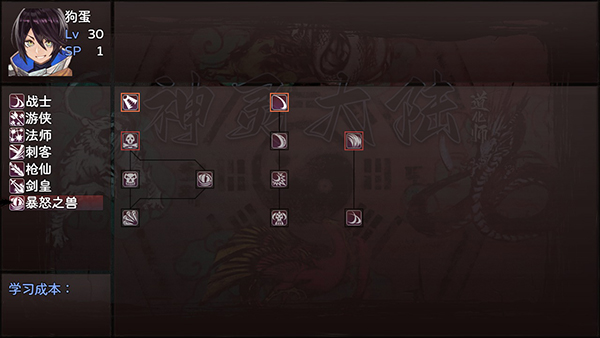 每个角色都有他独特的传承,可以理解为技能树,升一级会有两个技能点,学习技能消耗技能点。