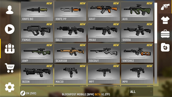 2、点击右侧的背包商店标识,这里是各种各样的武器,大家根据自己的喜好选择;