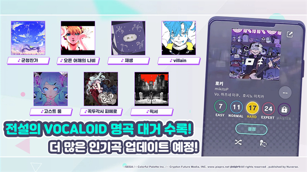 1、【初音未来与人气虚拟歌手的联合舞台!】 与六位虚拟歌手一起享受与现实世界完全不同的“世界”两个阶段的故事:初音未来、镜音连、镜音凛、巡音卢卡、Meiko 和 Kaito。 2、【熟悉又新的节奏游戏玩法】 经典街机游戏的转录设计,以自由形式的节奏音符、准确的音符判断、长长的相交幻灯片再现! 通过引入“上滑”,实际操作和角色的移动可能会匹配! 您可以从“EASY”到“MASTER”共5个难度级别中自由选择,从喜欢初音未来节奏游戏的初学者到想要挑战极限的节奏游戏大师,每个人都可以享受它。 使用自动直播功能,您可以自动清除直播并立即获得奖励。 在多现场模式下与其他玩家在同一个舞台上享受现场直播! FEVER/SUPER 完成 FEVER 时间即可获得额外物品奖励! 3、【人气VOCALOID音乐合集】 VOCALOID 名人堂音乐,与 VOCALOID Producer 合作的全新原创配乐。 初音未来的结局(作词:cosMo@Bousou-P 作曲:cosMo@Bousou-P) BRING IT ON(作词:Reol 作曲:Giga) 告诉你的世界(作词:kz 作曲:kz) HIBANA -Reloaded-(作词:DECO*27 作曲:DECO*27) 谱写未来(作词:mafumafu 作曲:mafumafu) SEKAI(作词:DECO*27 作曲:堀江翔太(kemu)) Wah Wah World(作词:Mitchie M 作曲:Giga & Mitchie M) Jishoumushoku(作词:Sasanomaly 作曲:Sasanomaly) ROKI(作词:mikitoP 作曲:mikitoP) 4、【虚拟直播一起享受】 与其他玩家一起享受虚拟直播!你甚至可以和你的朋友一起进入一个私人房间! 在情人节/万圣节/新年现场等重要日子举办有趣的派对!祝贺初音未来和大家! 即使在等待时也没有无聊的余地。使用表情符号和动作与您的味蕾交朋友。 您可以通过触摸屏幕来摇动荧光棒,或者通过滑动或倾斜屏幕来自由调整视点。以你最喜欢的方式欢呼。 你觉得你的穿搭太朴素了吗?没关系!更改头像的样式。今天我是最酷的加油大师! [用眼睛和耳朵享受的感官盛宴] 歌词和图像直接显示在实时背景中,为演奏增添乐趣。 360度全方位感受角色的激情和梦想,3D现场表演与你的游戏同步! 享受3D MV的精彩表演,您可以自由选择您喜欢的成员。 5、【仿佛身临其境般的体验】 渐行渐远的青梅竹马,不断退出试镜的倒霉女孩,梦想成为音乐家的腼腆少女,不为人知的女演员,素未谋面的网络圈子。五支热爱音乐的少男少女队伍的背后故事等着你。 获得成员后,自由组合、培养,将角色等级提升到最大,提升综合技能! 您可以享受使用实时2D技术实现的场景对话场景。您还可以解锁新服装来自定义您的角色。 探索 7 张真实世界地图、5 张“世界”地图和人物关系可获得额外奖励!更新日志