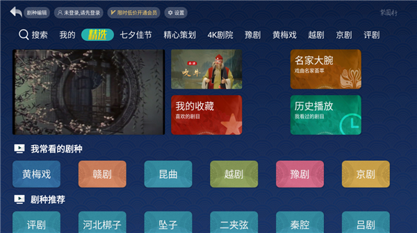 1、进入软件用户有账号可以直接登录,之后即可根据需求选择戏曲板块。