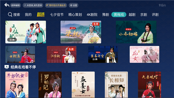 戏曲多多:涵盖全国省份正版戏曲、曲艺类视频 汇聚越剧、豫剧、黄梅戏、京剧、粤剧、秦腔、昆曲、潮剧、评剧、曲剧、京韵大鼓、花鼓戏、河北梆子、晋剧、淮剧、莆仙戏、川剧、绍剧、庐剧、评书、相声、蒲剧、婺剧、湘剧、吕剧、扬剧、闽剧、沪剧、二人转等众多曲种,超2w部高清正版戏曲视频。 包含穆桂英挂帅、朝阳沟、五女拜寿、梁山伯与祝英台、钱塘里、葬花吟、红楼梦、姜子牙走淇河、七品芝麻官、刘墉钏西宫、刘墉下南京、女驸马、天仙配、龙女、牛郎织女、赵氏孤儿、空城计、下河东、桃花扇、岭南人家、花蕊夫人、一捧雪、佘太君抗婚、紫钗记、包公怒刨陈世美、关汉卿、孟丽君、打金枝、花木兰、贵妃醉酒、钏美案、白蛇传、苏三起解、贵妃醉酒、大保国探皇陵二进宫、白蛇传情、火焰驹、锁麟囊、长生殿、十五贯、南柯梦、梧桐雨、三进亲王宫、秦香莲、花为媒、天下父母、拉荆笆、哭祖庙、赵云劫江、喜荣归、焚香记、金玉奴、武松打店、斩子交印、牙痕记、卖油郎与花魁女、状元与乞丐、天要下雨娘要嫁等众多名曲。 更有及受关注的梅兰芳、陈丽君、李云霄、何赛飞、茅威涛、李维康、李胜素、梅葆功、程砚秋、张火丁、迟小秋、尚小云、荀慧生、马连良、严凤英、常香玉、严凤英、王少舫、潘璟刑、熊少云、斯淑娴、韩再芬、马兰、吴琼、黄新德、杨俊、张辉、陈小芳、何云、吴美莲、程丞、林蜜蜜、杨舒星、陈需然、潘柠静、查江剑、候婷婷、虞文斌、陈丽君、李云霄、何赛飞等众多名家经典内容。 相声评书:单田芳系列、刘兰芳系列、郭德纲系列、三国演义、水浒全传、岳飞传、隋唐演义、鬼吹灯、资治通鉴、嘻哈包袱铺。 曲艺戏曲:诸葛亮系列、京剧大观、梨园在线、卷席筒、三打金枝、七品芝麻官、舌战群儒、寇公案、茶馆、豫剧名家刘海功全集。梨园行戏曲HD版使用指南