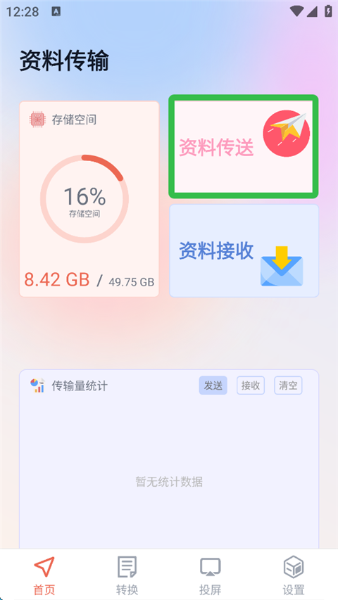 1、在旧机上进入茄子快传app,点击【资料传输】。