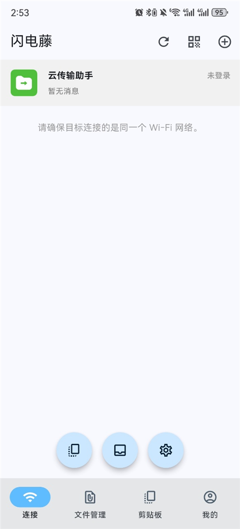 2、如果没互相发现的话,可以采用扫码进行连接,扫码功能在主页的右上角。