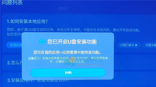 6、进入管理就会多一个本地安装选项,如果没有需要重启电视