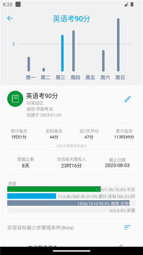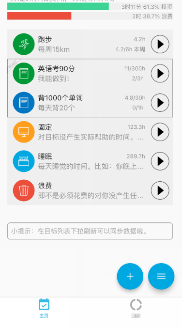 1、四类时间 我们把时间分成了四类:投资、睡眠、固定、浪费,你花在目标上的时间都属于投资,睡眠指每天的正常睡觉的时间,固定指无法避免且不带来直接的成长时间花费,比如每天吃饭、上下班、家务等花费的时间,除前面三类之外,其它未使用的时间属于浪费。 2、每日分配和时序图 每天自动生成时间分配图和时序图,对每天的使用给予评级,激励你投入,让你知道时间都去哪儿了,更高效的利用时间;同时能生成每周投入对比图、睡眠时长以及起床曲线图,可帮你了解自己的持续投入,养成良好睡眠作息习惯。 3、每周投入对比和睡眠走势图 能够生成每周投入对比图、睡眠时长以及起床曲线图,可帮你了解自己的持续投入,养成良好睡眠作息习惯,能够按周、月、年以及自定义时间段来进行统计分析,让你在更大时间尺度上了解自己的投入情况,发现自己宏观上的周期规律。 4、实时计时手动补录 应用不仅可以支持实时计时,还能手动补录,记录可以添加不同类型标签和备注,帮你进行多维度统计分析,让你更了解自己。更新日志